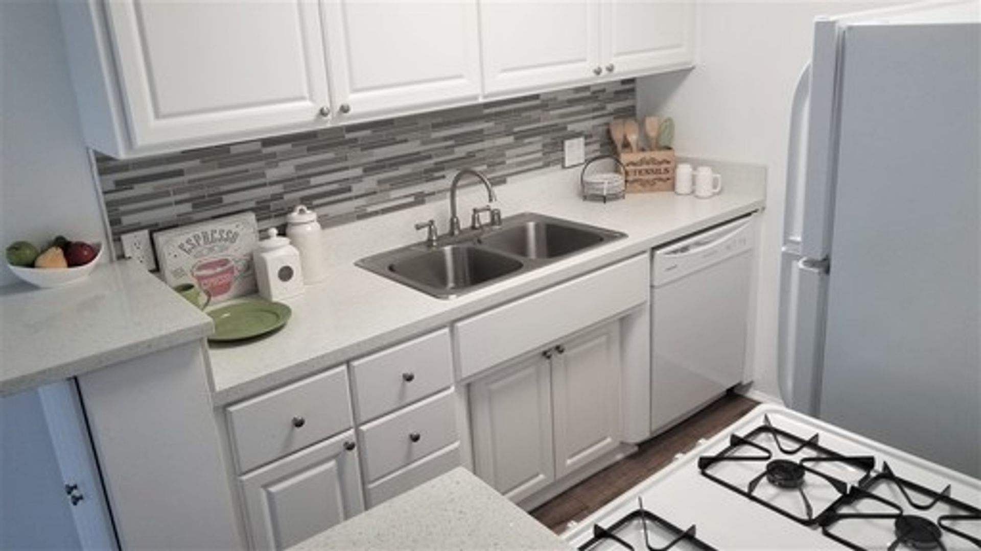 Seeing is believing - and we know you'll love these renovations! Featuring beautiful quartz kitchen counter-tops with custom back splash, refrigerator, dishwasher, gas stove, wood-look plank flooring, crown valance window treatments, mirrored closet doors, brushed nickel fixtures, and updated lighting all in a super spacious floor plan. Central air and heating.