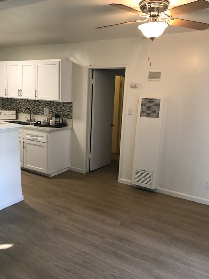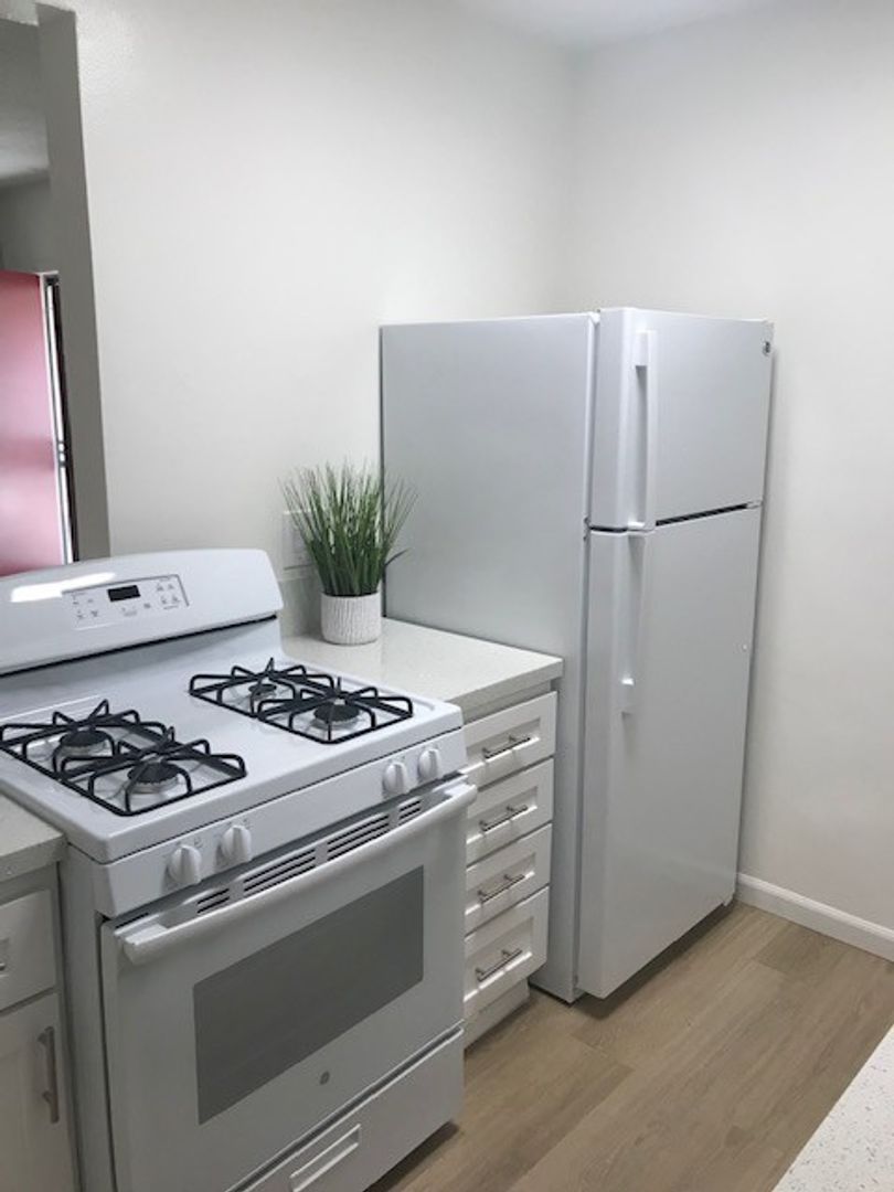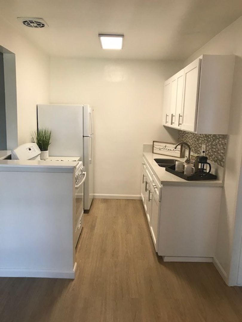 This beautifully renovated apartment boasts impressive upgrades, including appliances (refrigerator and stove), a stylish designer backsplash, and quartz countertops in the kitchen. Enjoy easy-to-clean vinyl plank wood flooring throughout the living areas, complemented by plush carpeting in the bedroom. The bathroom features convenient built-in storage and is located just off the bedroom for easy access. You’ll appreciate the spacious walk-in closet as you settle into your new home. Plus, a shared garage is included for your convenience!