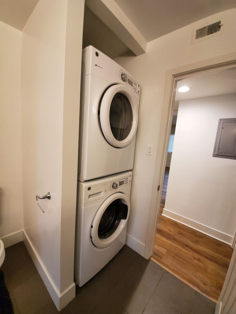 Come in and tour, fall in love, and move in as soon as you are approved! You'll love the washer and dryer in unit, new counter tops, cabinets, stainless steel appliances (stove, dishwasher, refrigerator, microwave), assigned parking, secured entry, cats and small dogs welcome, no smoking, shared pool and BBQ area. Central heating and air conditioning.