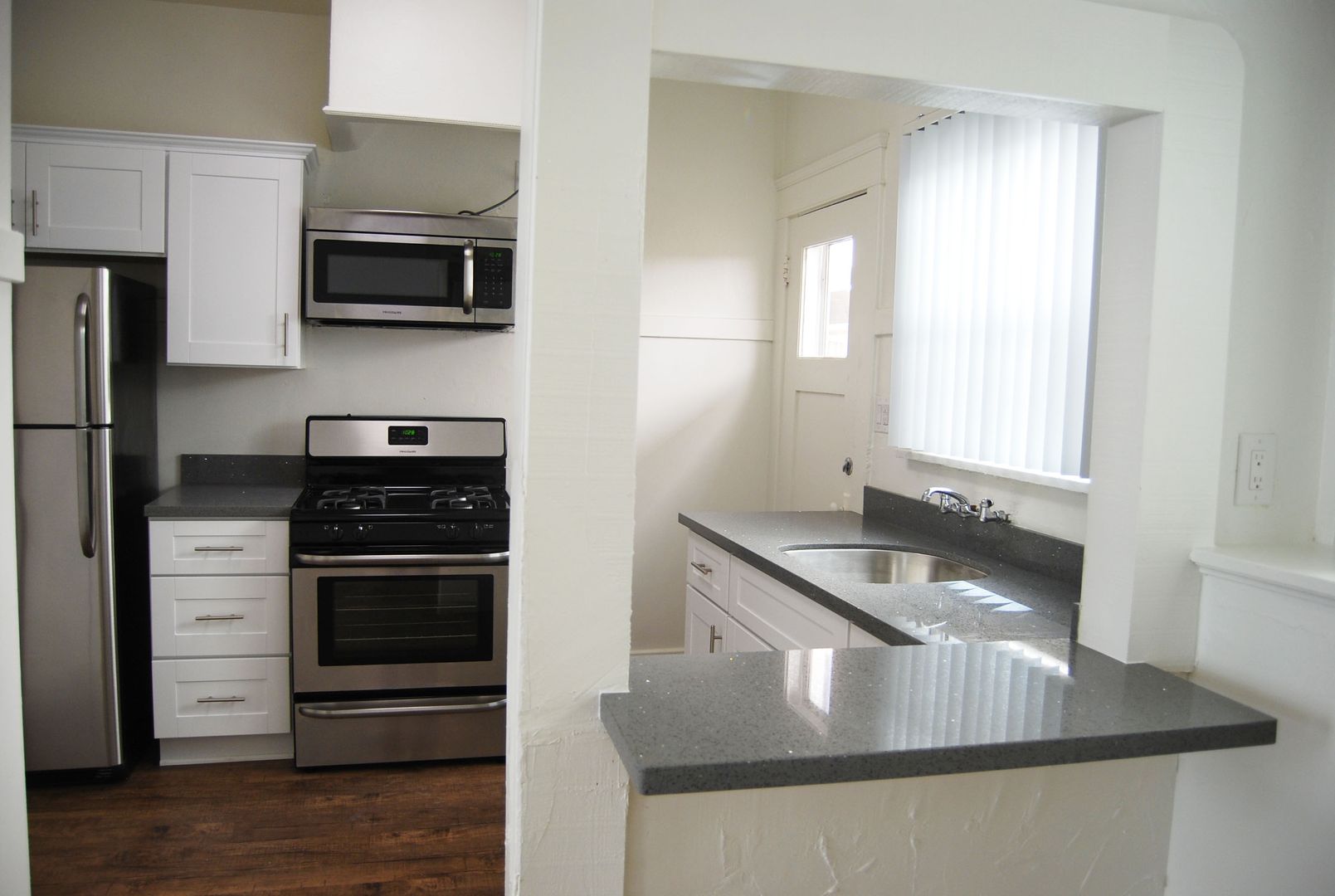 This unit includes wood style plank flooring, beautiful, custom kitchen cabinetry, full stainless steel appliance package (gas stove, built-in microwave, and yes, even the fridge!), sparkling quartz counter tops, ceiling fan, window treatments, new fixtures, freshly re-glazed tub, modern bathroom vanity, and updated electrical and plumbing. Don't worry - we've kept the delightful crown molding and built-in storage areas! For your convenience, we offer on-site laundry open 24/7.