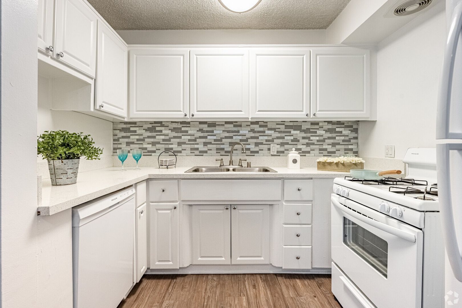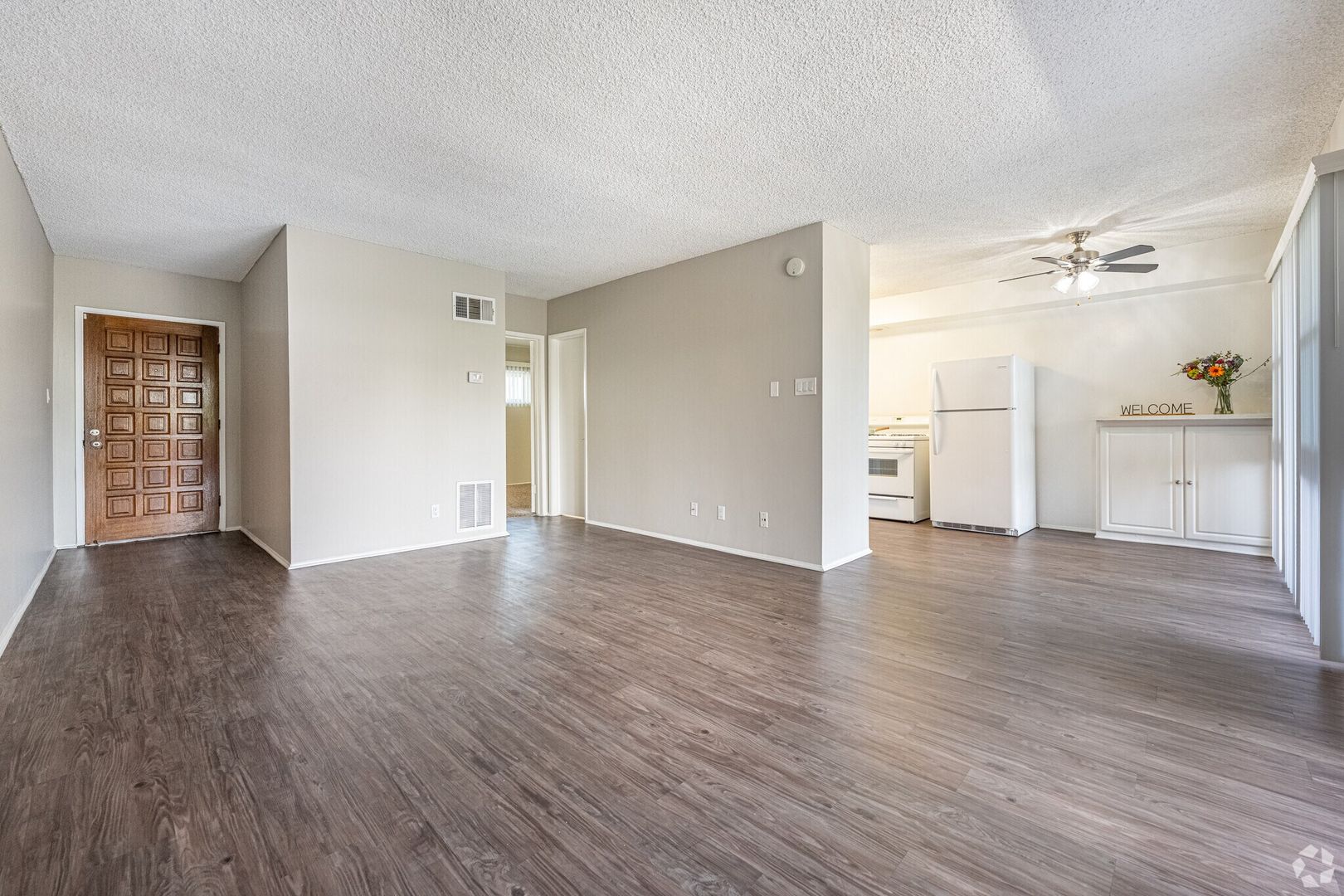 You need to check out our newest renovated unit! Featuring beautiful quartz kitchen counter-tops with custom back splash, new refrigerator and gas stove, wood-look plank flooring, crown valance window treatments, mirrored closet doors, brushed nickel fixtures, and updated lighting all in a super spacious floor plan with an extra large patio!