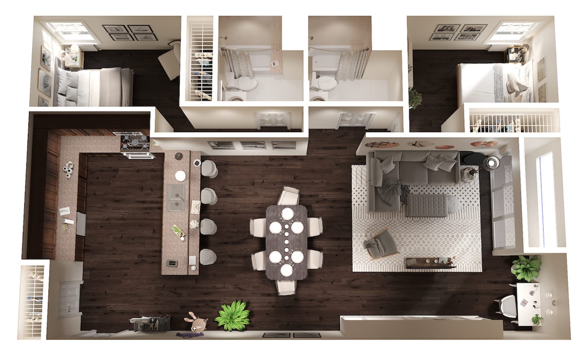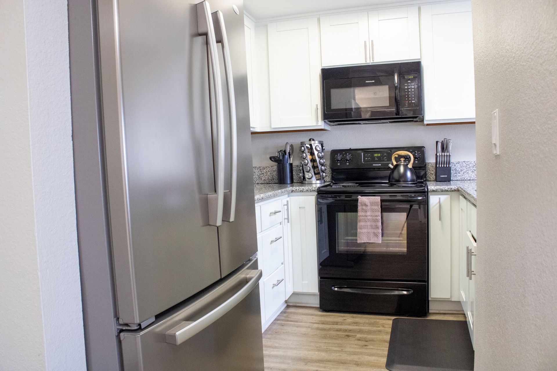 Choose from spacious studio, one-, or two-bedroom floor plans, all thoughtfully designed with features like all-electric kitchens, granite countertops, wood-style flooring, and central air conditioning—ideal for relaxing and recharging.