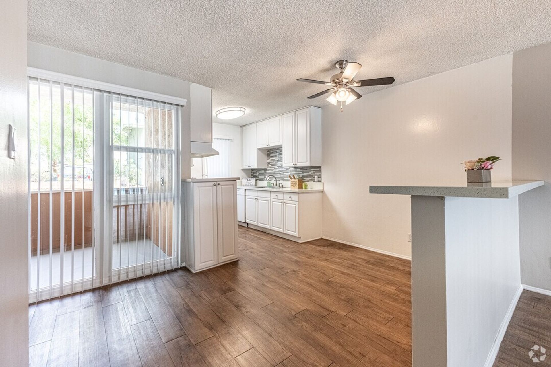 Seeing is believing - and we know you'll love these renovations! Featuring beautiful quartz kitchen counter-tops with custom back splash, refrigerator, dishwasher, gas stove, wood-look plank flooring, crown valance window treatments, mirrored closet doors, brushed nickel fixtures, and updated lighting all in a super spacious floor plan with an extra large patio! Central air & heating!