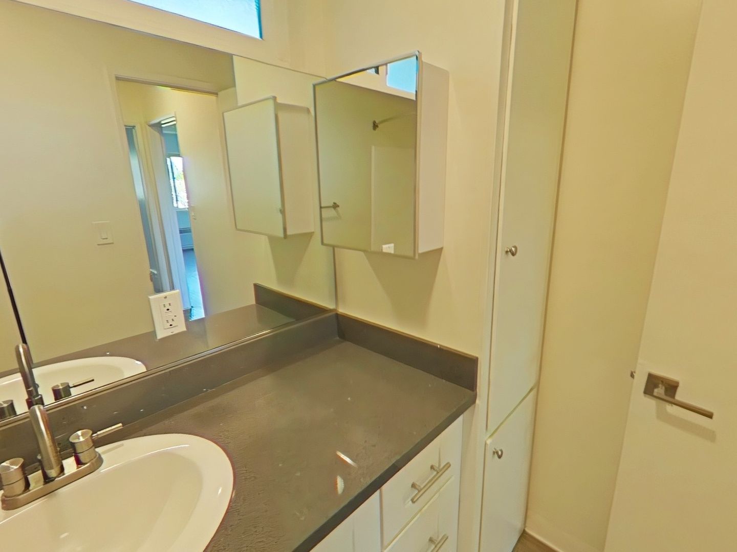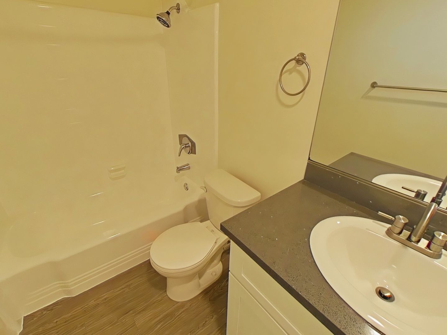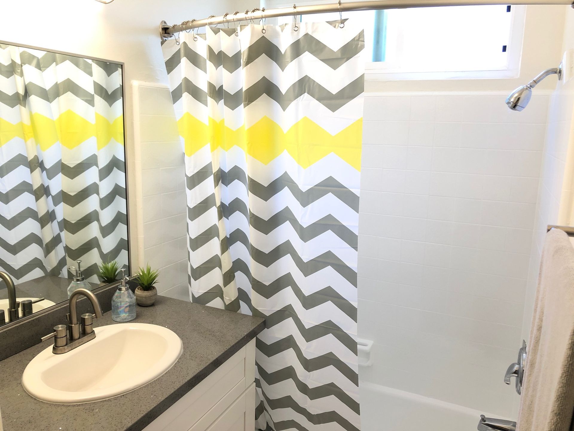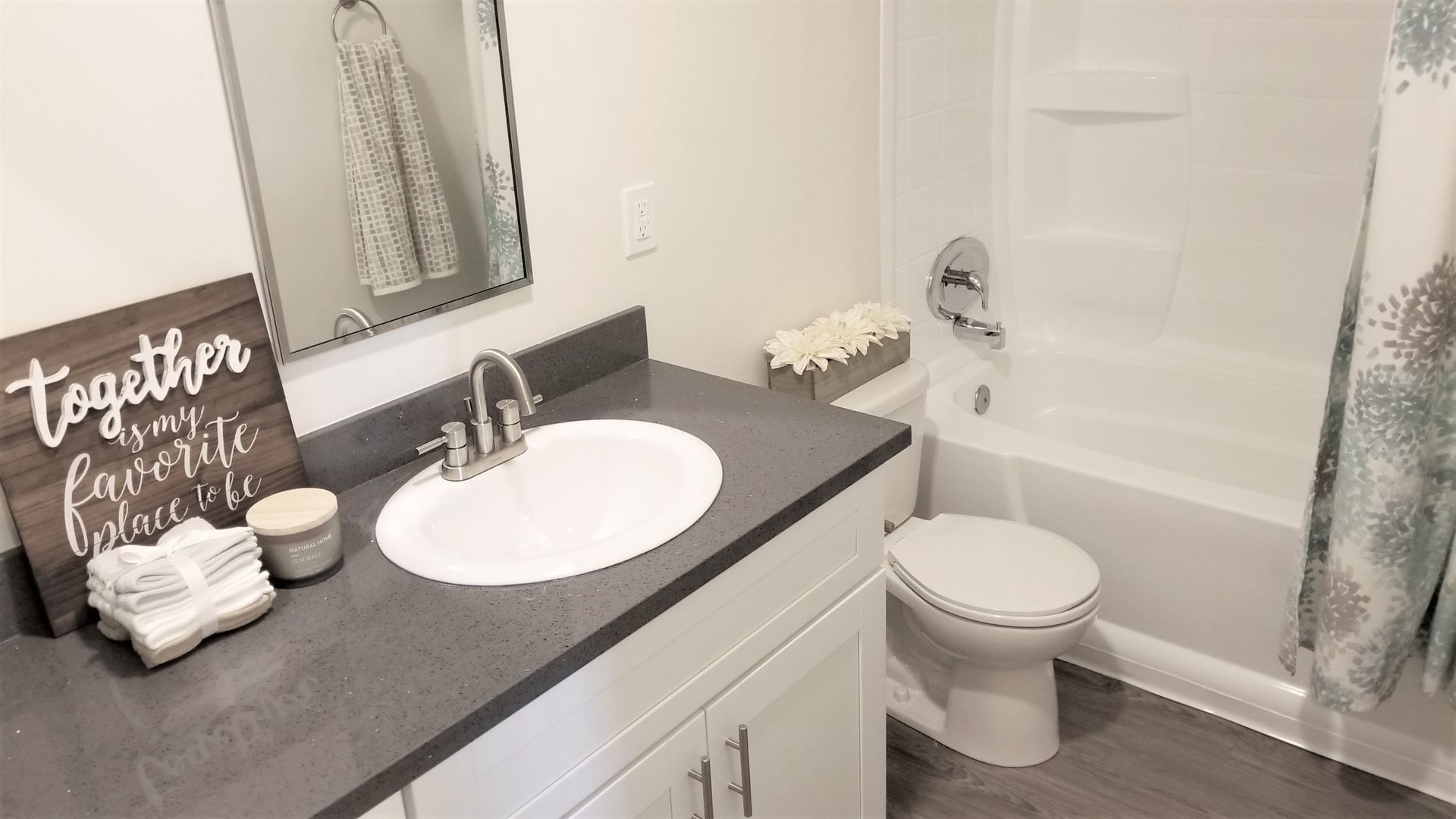 o Updated bathroom with designer vanity and refinished tub/shower combo